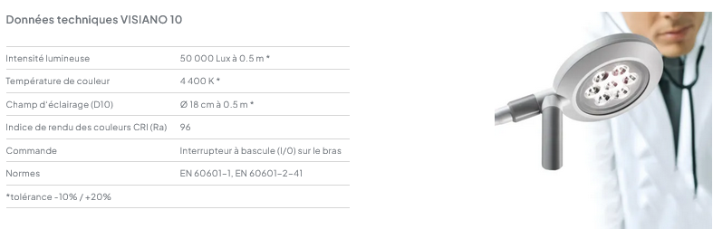 - Diamètre du champ éclairé 180 mm (env. 50 000 lux à 0,5m)