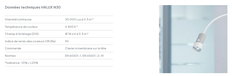 | Éclairement (Lux) | 30 000 lux à 0.5m |