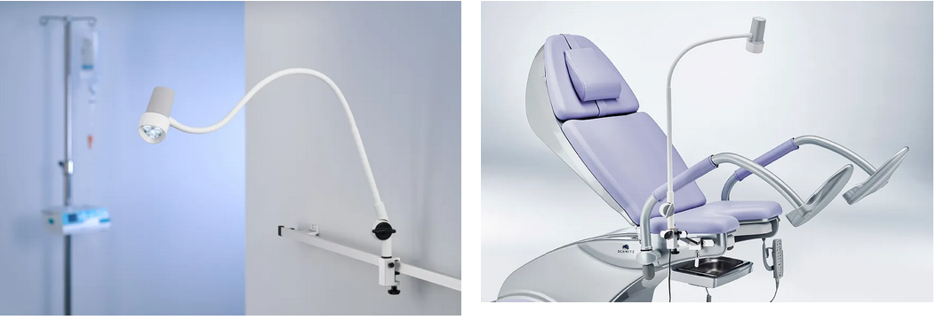 C'est le luminaire d'examen le plus petit chez Derungs : avec 30,000 lux à 50 cm et une gamme polyvalente, il complète idéalement l'équipement des cabinets.