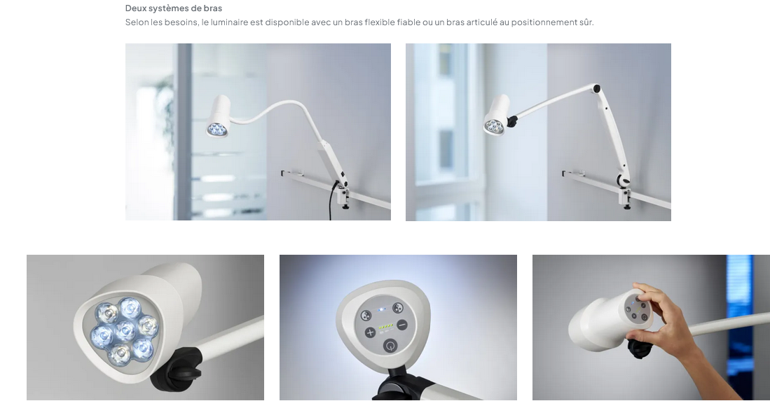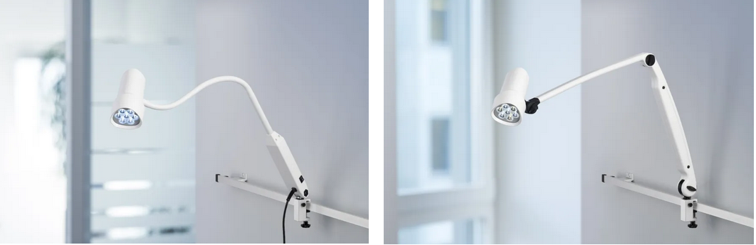 - Disponible avec bras flexible ou bras compensé par ressort.