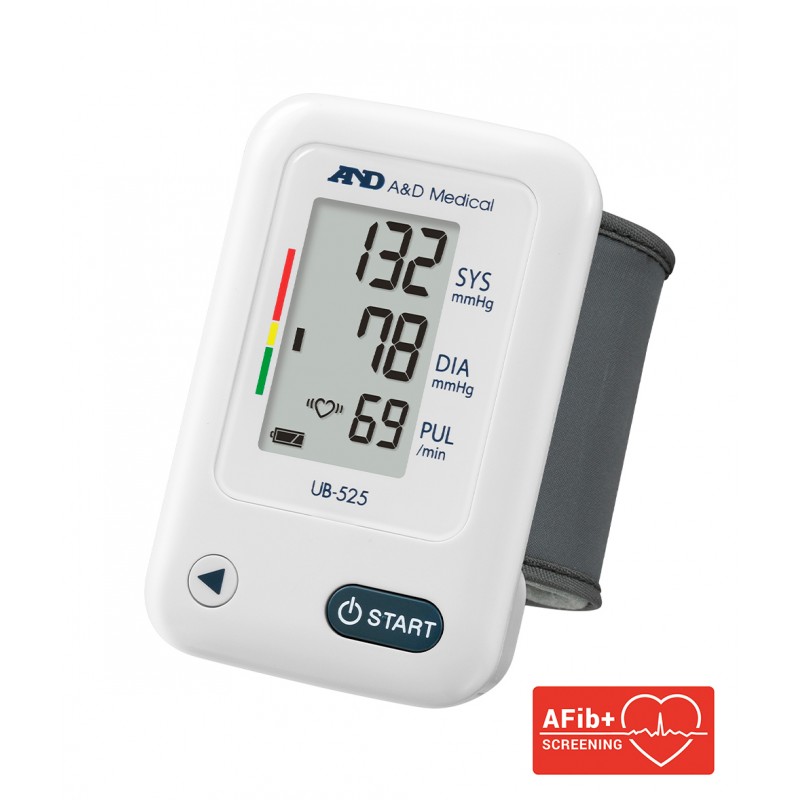 Le moniteur automatique de poignet UB-525 bénéficie de nombreuses fonctionnalités développées par A&D pour un usage clinique professionnel, y compris la capacité de dépister l'AFib (Fibrillation auriculaire) dans une seule mesure.